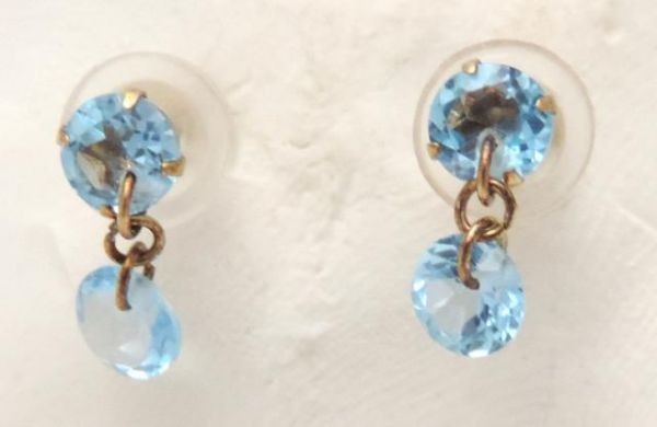 円形にカッティングされたサファイア(約4ミリ)が2つ使われていて、ぶら下がっているサファイアは枠なしで美しいブルーがお楽しみいただけます。