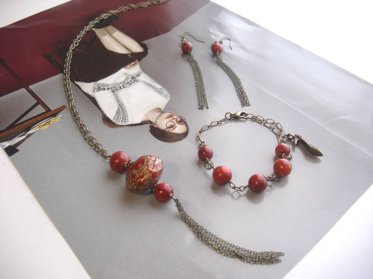 好きなものを楽しんで・・シリーズです♪乙女の一揃い・・シックな赤のスポンジ珊瑚の3点セットです♪8ミリ、10ミリの丸玉の珊瑚や中国ビーズやデザインチェーンを合わせてオリエンタルな表情です♪ネックレスは丸玉のスポンジ珊瑚にトップは大きめの中国ビーズと華奢なチェーンを合わせました♪長さは90センチでアジャスター10センチ位です♪トップは13センチ位です♪8ミリ、10ミリのスポンジ珊瑚のブレスレットは全長23センチ位で調節自由です♪8ミリのスポンジ珊瑚にチェーンを合わせたピアスは全長9センチ位です♪イヤリングに変更出来ます♪ネックレスは単品でも出品しています♪シンプルで飽きのこないいつま でも着けられるデザインを考えて作りました♪ハンドメイドをご理解頂いてノークレーム、ノーリターンでお願いします
