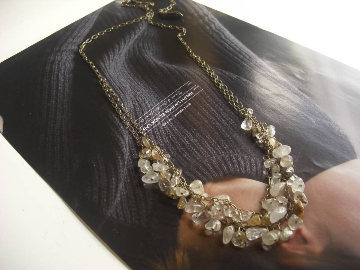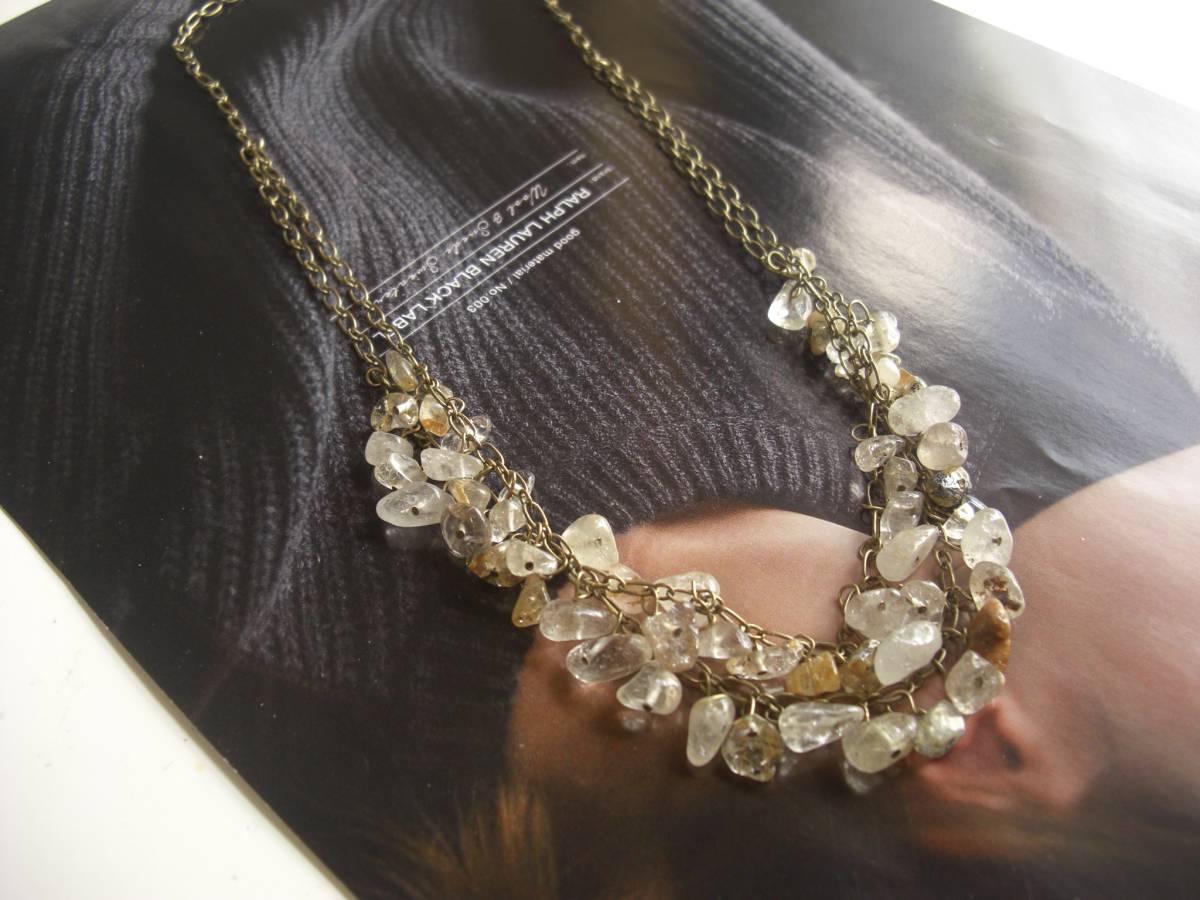 好きなものを楽しんで・・シリーズです♪ロマンチック・・神秘的なルチルクォーツのネックレスです♪2連のルチルクォーツのさざれにデザインチェーンを合わせてさりげなく華やかです♪長さは77センチ位で調節自由です♪お揃いのブレスレットやピアスも出品しています ♪シンプルで飽きのこないいつまでも着けられるデザインを考えて作りました!ハンドメイドをご理解頂いてノークレーム、ノーリターンでお願いします