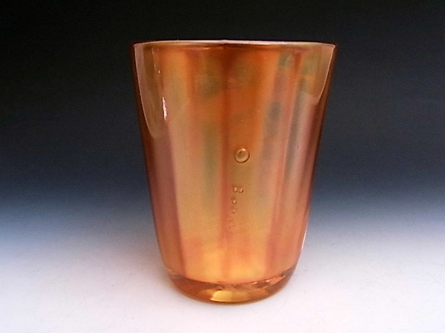 ラスター オレンジ レトロ 花絵 グラス ◆ 米国アンティーク