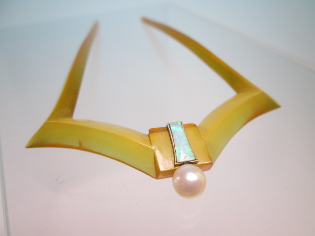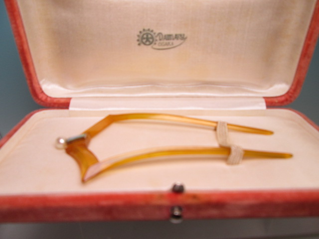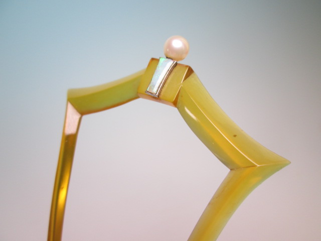 【江月】 アンティーク・大丸 本鼈甲 オパール&本真珠飾りの繊細なかんざし 共ケース付