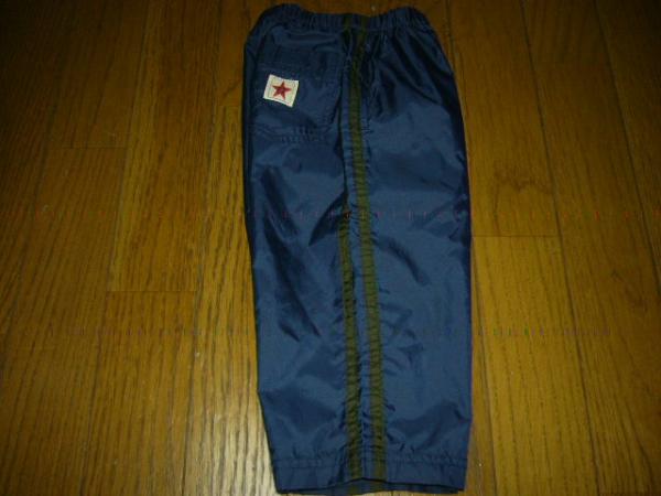☆ ムージョンジョンの、スポーツ用風の長ズボンです。普段着にもどうぞ。 こういう、ズボンはあるととっても便利だと思います。汚れの目立たない色合いです ☆ (色) 少し、光沢のある紺がベース / サイドのラインは、深緑系 (サイズ) 80cm (製造) 日本製 / ムージョンジョン (素材) ナイロン 100% (デザイン) ~ 布地の厚さは、薄めの部類に入ると思います。春とか 夏の終わりなどに着るのに向いていると思います。ウエストのゴムの入れ替えの 部分は無いのですが、何処かを切れば簡単に入れ替える事が出来ます。 太いゴムです。ウエストの下、両サイドにポケットがあり。裾は、ストーンとした感じです。 お尻の右側には、マジックテープ付きのポケットが付いています。 男の子向きだと思いますが、モノトーンが好きな女の子にもお勧めです。 汚れの目立たない色合いで、ママも大助かりをする事でしょう。 (状態) ~ 中古です。洗濯済/全体的には、中古としたら綺麗だと思います。見た目は、そんなに はいていないと思います。軽く低温でアイロンをかけます。 (総丈) 42cm (ヒップ、片側) 31cm (脚の出る部分の横幅) 14、1cm (股下の長さ) 24、1cm (太ももの横幅) 19、7cm → 伸縮性はありません |