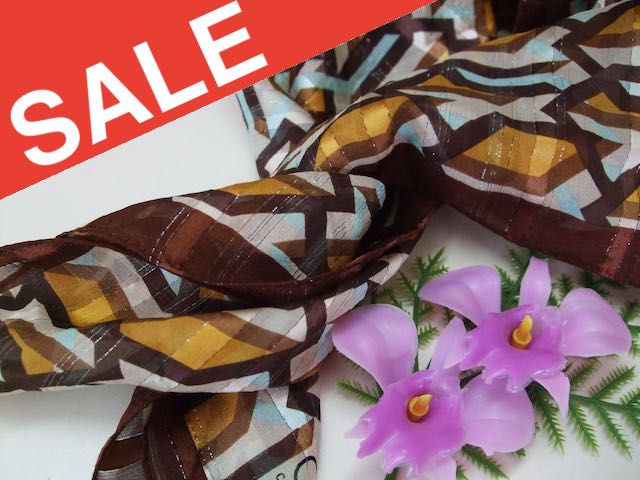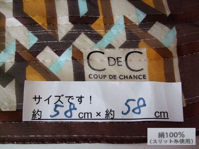(^_^)良品/スカーフ/COUP DE CHANCE/クードシャンス/絹/シルク/茶色/水色/F5