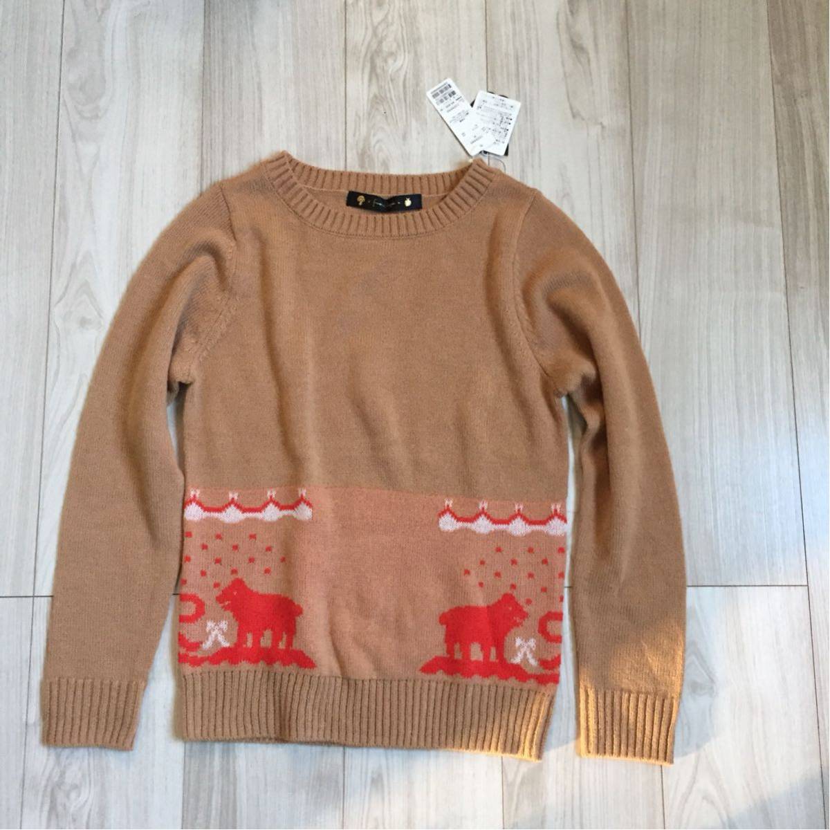 新品タグ 未使用 未着 franche lippee black フランシュリッペ ブラック 毛混 可愛いクマ柄長袖ニット