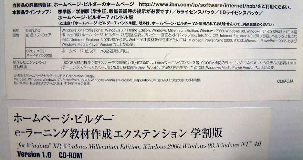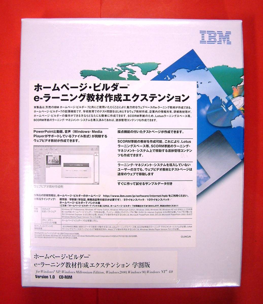 IBM ホームページ・ビルダー用拡張ソフト eラーニング教材作成エクステンション 学割版の新品未開封品です。 詳細画像