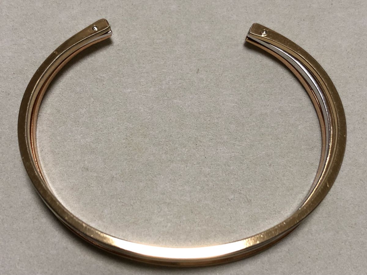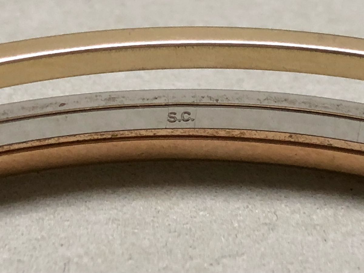 スリーカラーのデザインバングルです。S.C.と刻印がありますが、詳細不明です。金属面に若干の色あせがあります。
