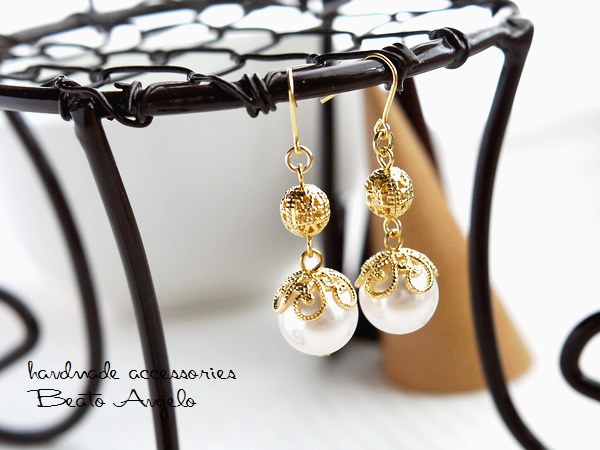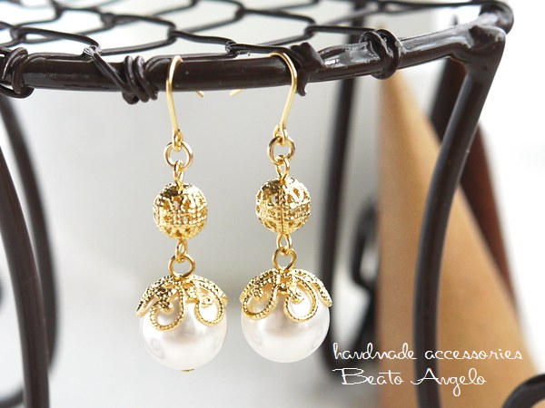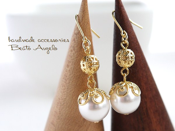 スワロフスキーパールと透かし玉のピアス(p-110)ホワイト G