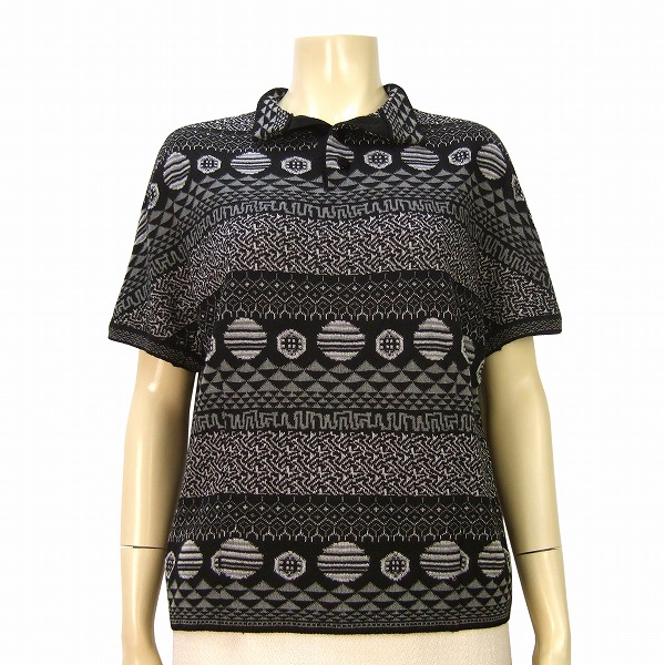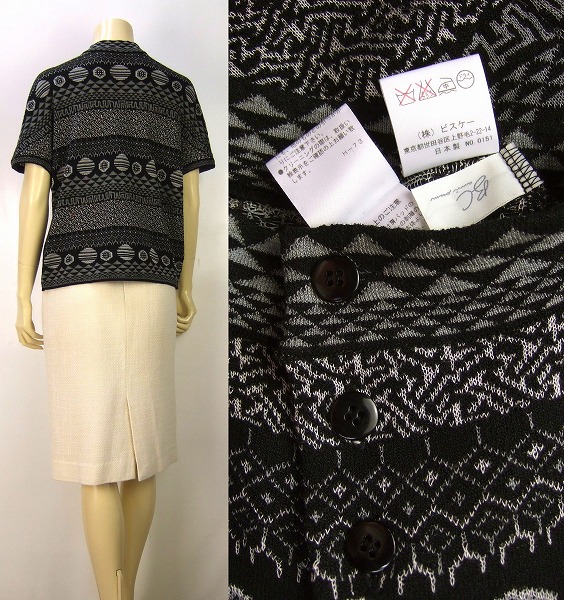 A 美品★BC ビスケー★黒×グレー系*麻(リネン)混生地*綺麗モダン柄*高貴ニットカットソー*9号表記★13~15号*XL(2L)~XXL(3L)*42~44相当