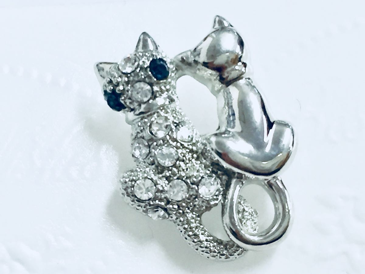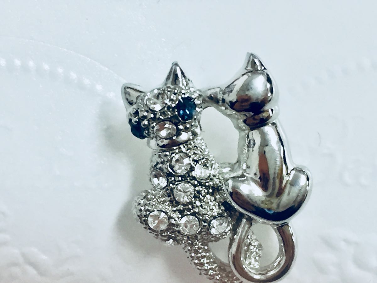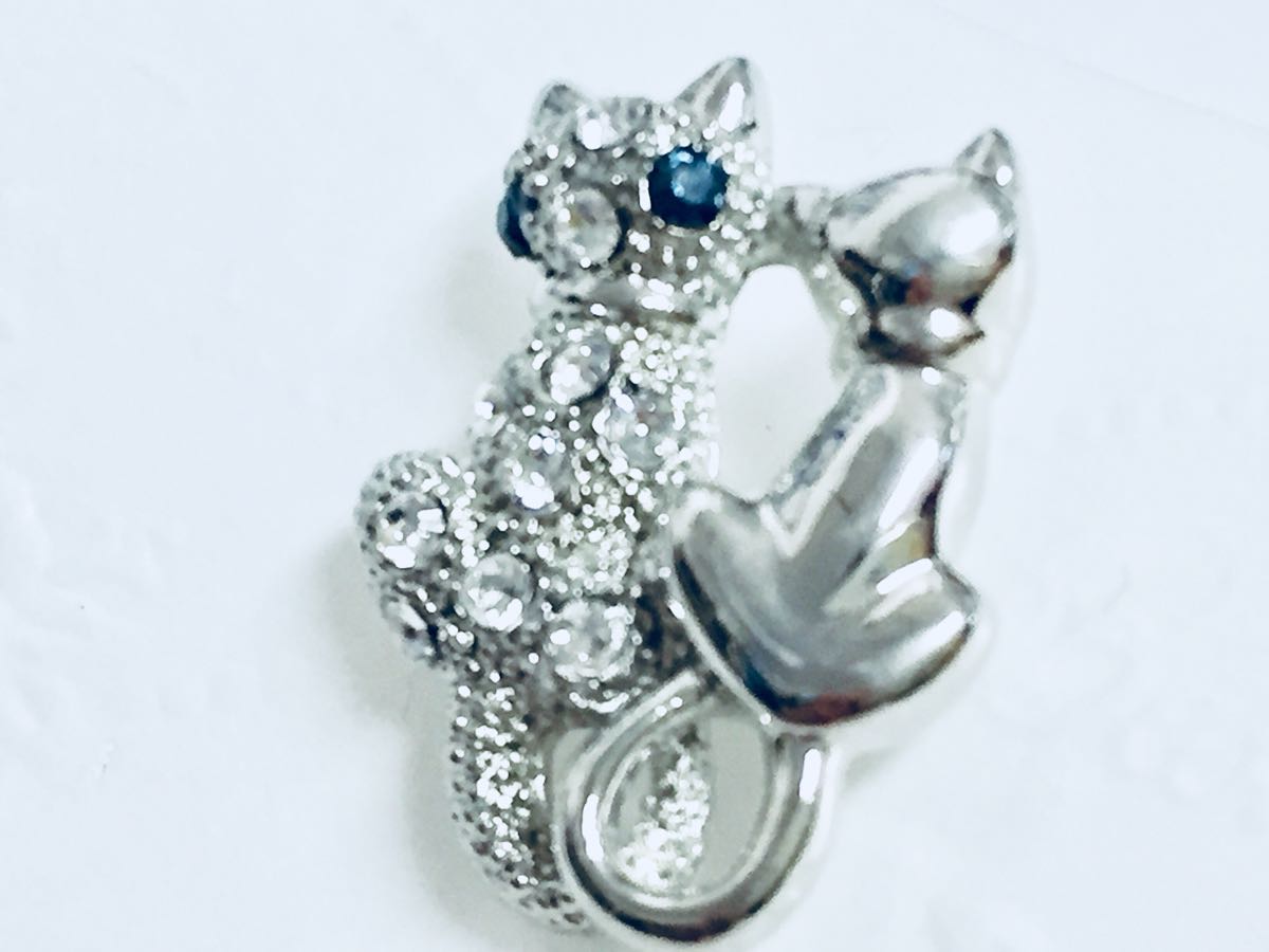 猫 子猫2匹ブローチ スワロフスキー かわいい SWAROVSKIアクセサリー ゴージャス 綺麗 プレゼント梱包無料 有名デザイナーデザイン