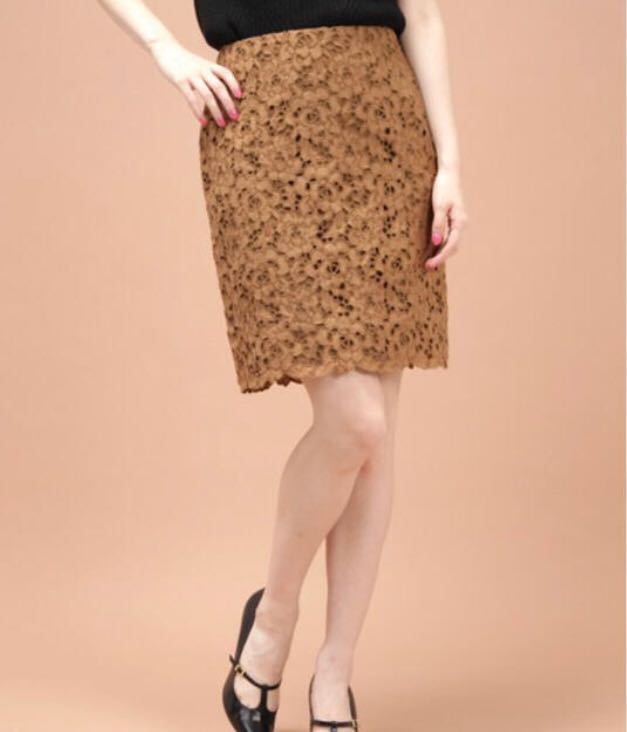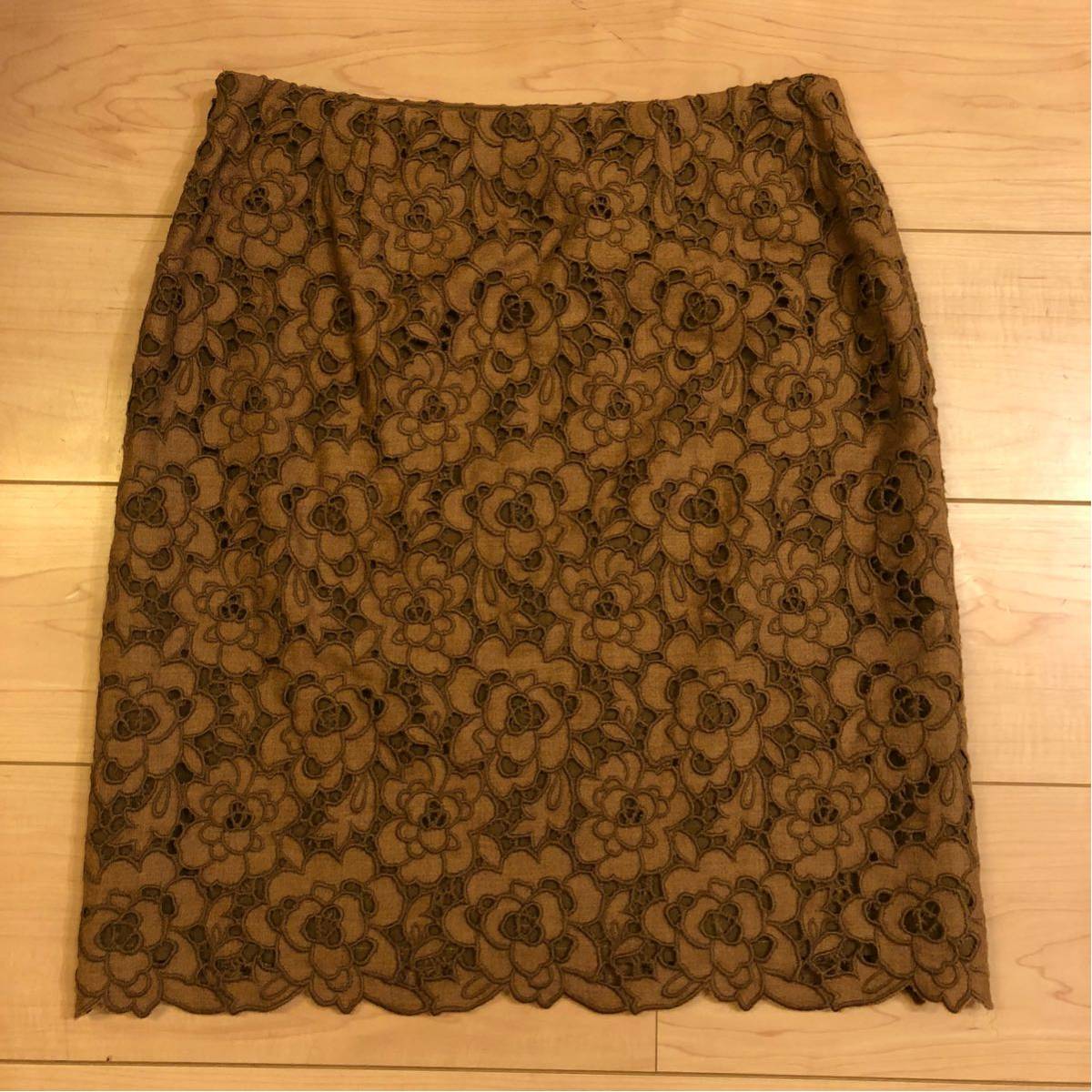 ウール生地に刺繍とカットワークを施した、リッチなレース地のタイトスカートです。