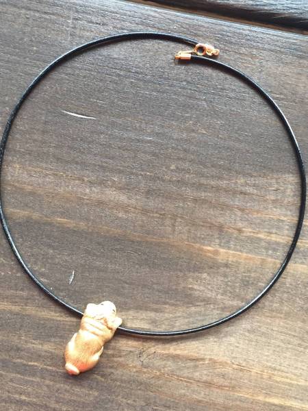 即決!送料無料!京都 9689 黒パグ クロパグ 非売品 K18のパグ PUG パグ レザー チョーカー ネックレス ゴールド 金 アクセサリー !!
