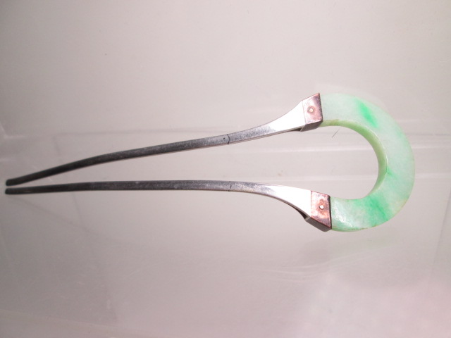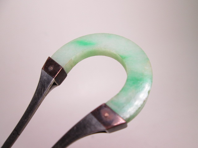 【江月】 アンティーク・彫金細工 本翡翠のかんざし 13,74g 木箱付