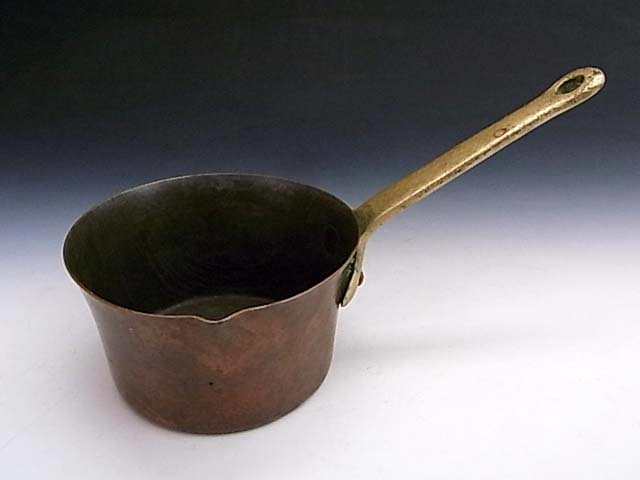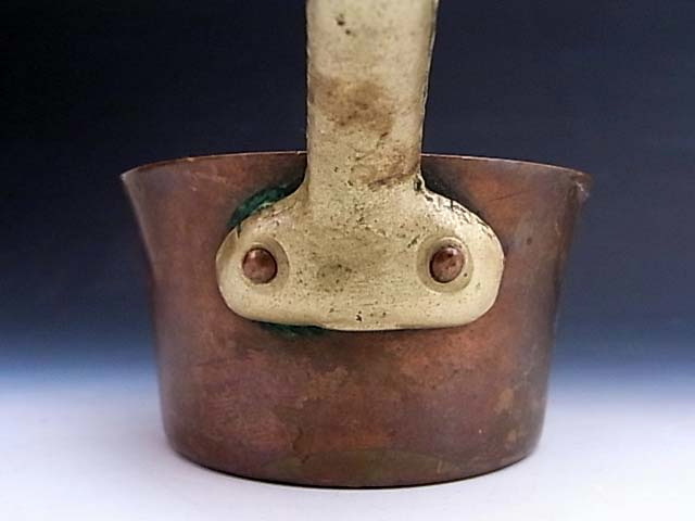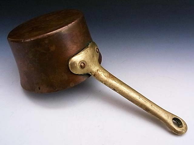 仏蘭西製の古い銅製プチパンです。 ソースなどを作るときに使われてのでしょうか。 しっかりとした作りになっています。 状態は経年によるくすみ、汚れがある以外は美品です。 大きさはパンの直径が7.7cm、高さが4.2cm、ハンドルを含めた全長が15cm あります。 送料は2700円頂きます。 お支払いはYahoo!かんたん決済、または銀行振込みでお願いします。 ご入金確認後2日以内にアメリカより航空便でお送りいたします。 発送後通常4~10日でお届けいたします。 複数品落札の場合は送料をまとめて計算させて頂きますのでお得になります。 私共は経済産業省の定める特定商取引法を順守しております。 当方の所在地住所等は出品者の自己紹介情報欄をご覧ください。 ご質問等ございましたらお気軽にお問い合わせください。   他にもオールドノリタケを中心に沢山出品しておりますのでここをクリックしてご覧ください。