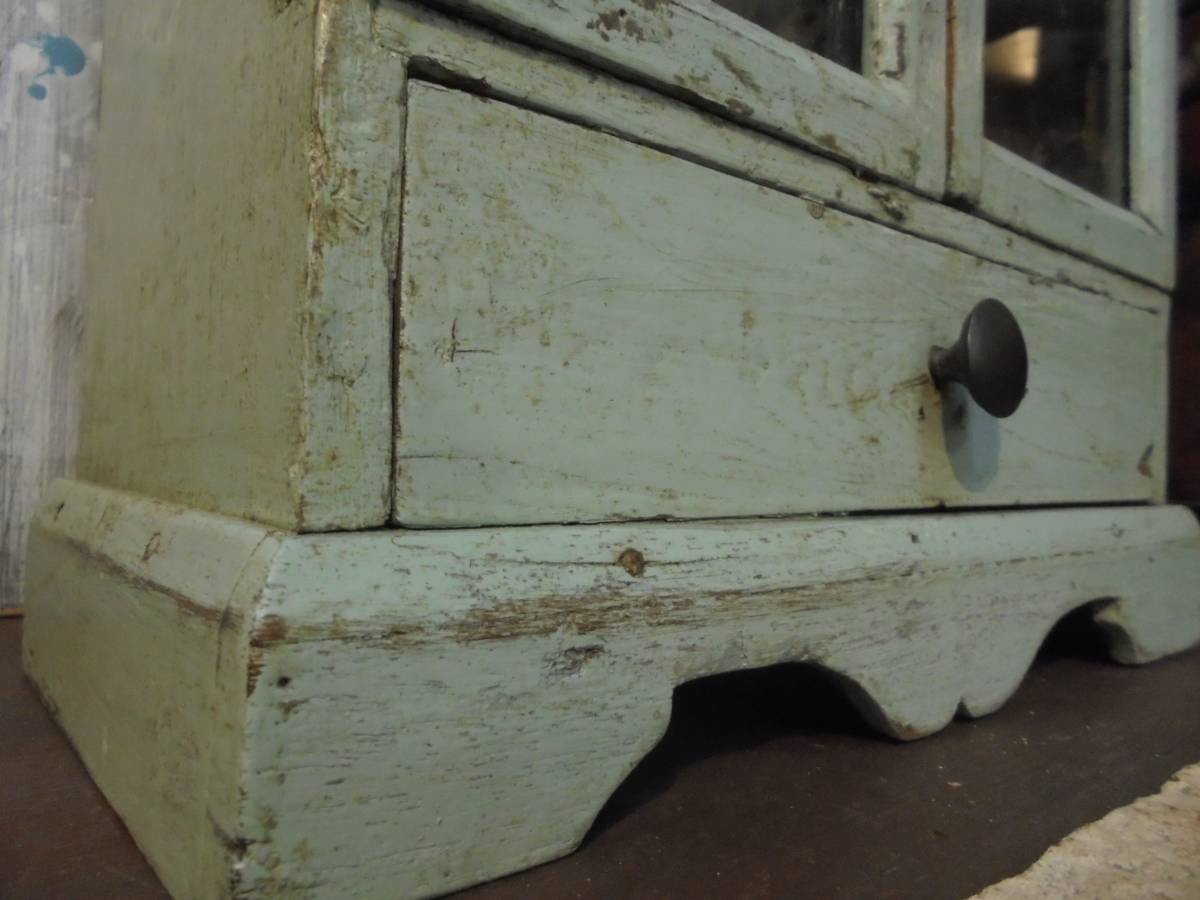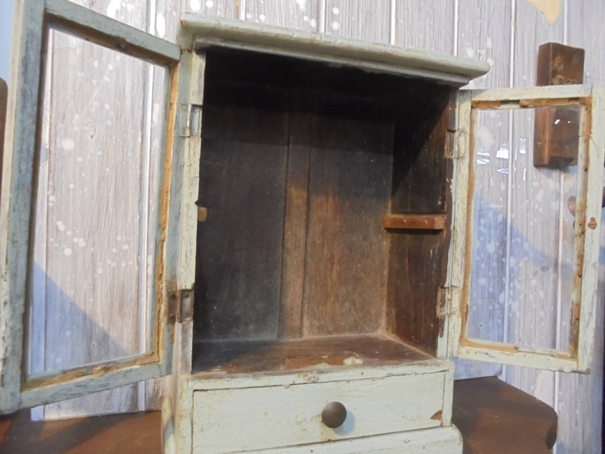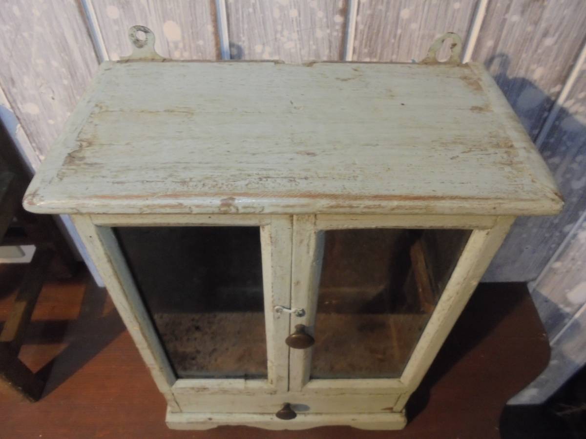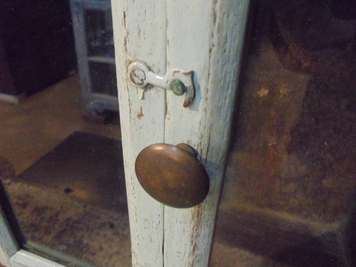 【フランス蚤の市オールドチークのガラス棚】シェルフ木製真鍮古道具アンティークリペイントゆらゆらガラス収納家具インテリアシャビー
