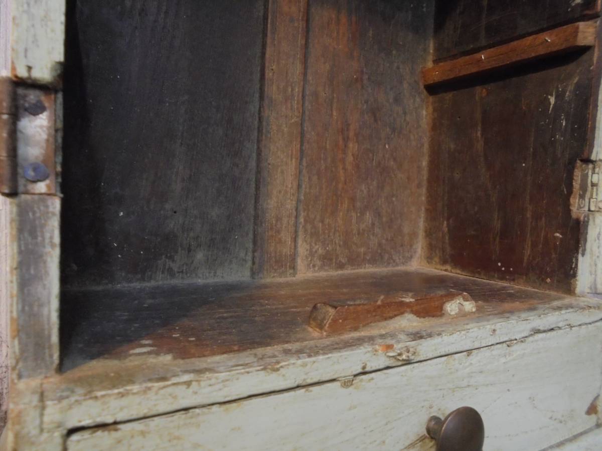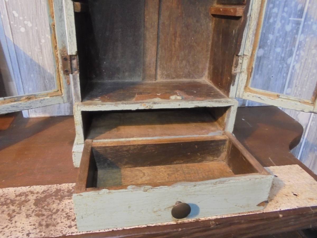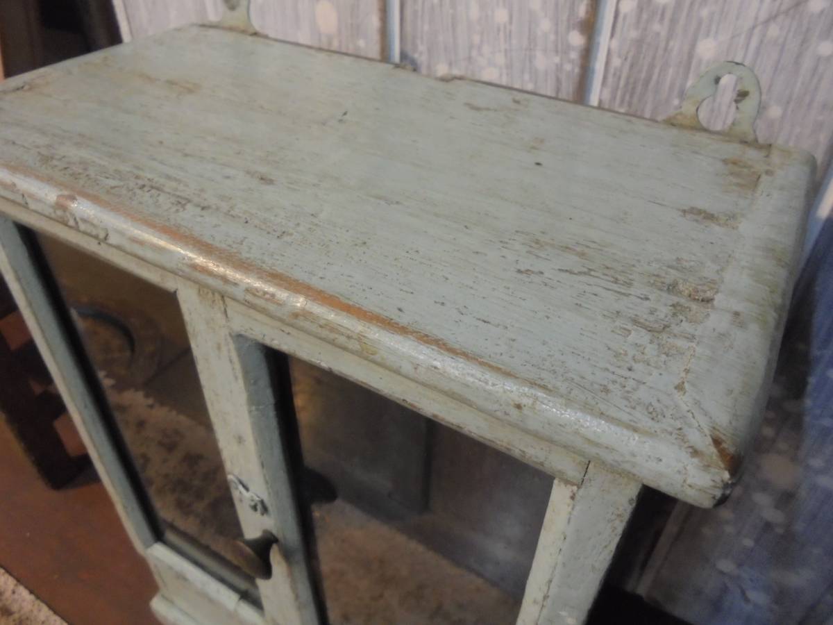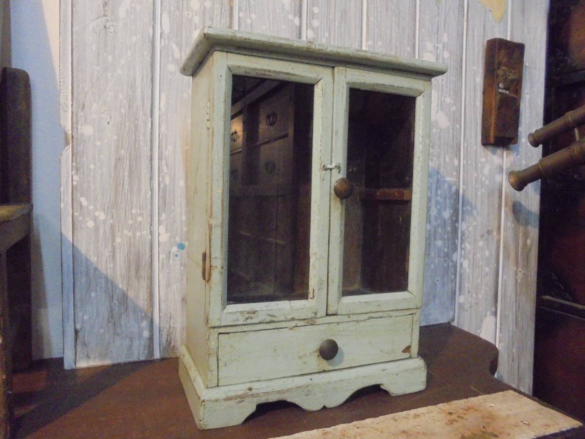 【フランス蚤の市オールドチークのガラス棚】シェルフ木製真鍮古道具アンティークリペイントゆらゆらガラス収納家具インテリアシャビー