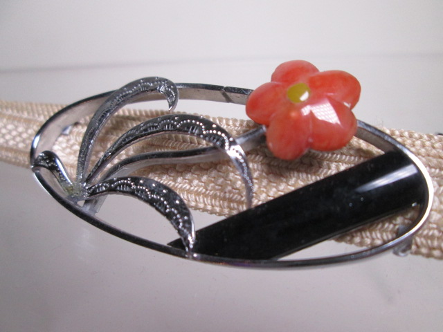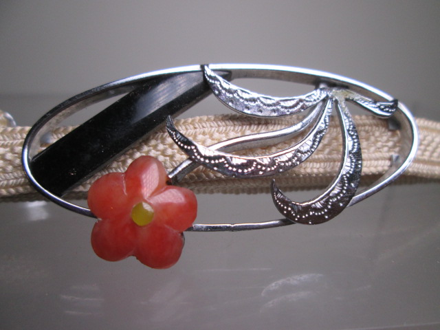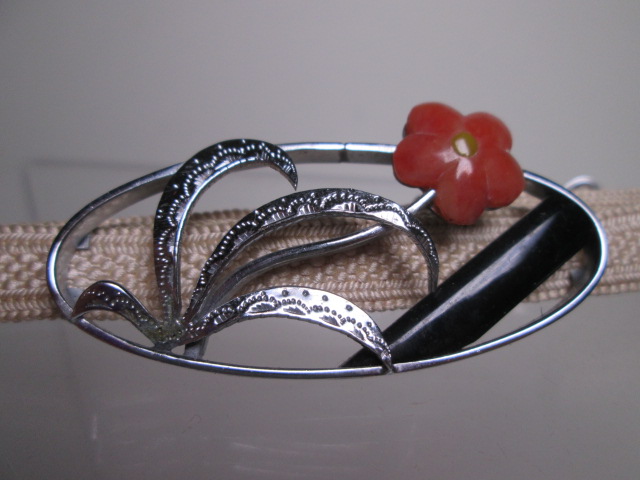 【江月】☆アンティーク・彫金細工 花文の可愛い帯留め 共ケース付