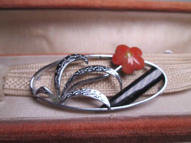 金具はSPMですが、刻印は有りません。花部分は瑪瑙のようです。