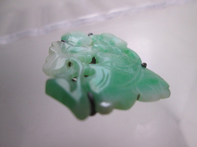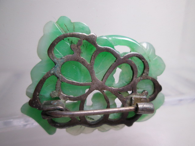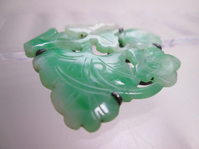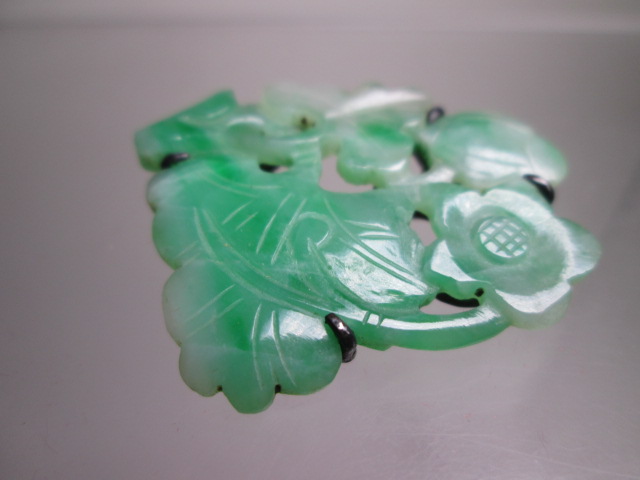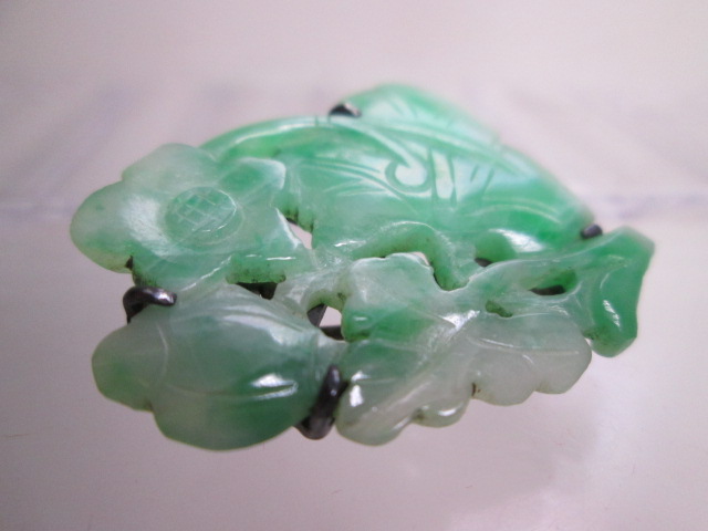 【江月】アンティーク・本翡翠 花透かし彫刻のブローチ 5,58g