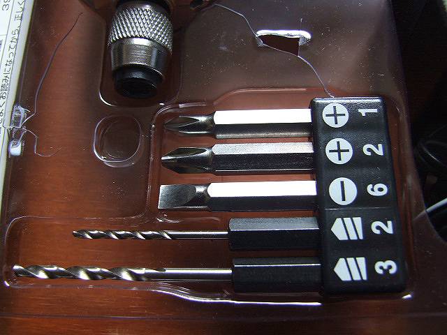 ★標準付属品:ドライバービット/+1×50mm、+2×50mm、-6×50mm各1本 ドリルビット/六角軸ドリルビット2mm・3mm(軸径6.35mm)、専用充電器、収納ポーチ。