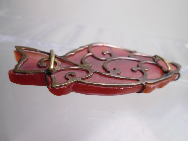 【江月】アンティーク・本瑪瑙 鰹彫刻の帯留め 12,92g