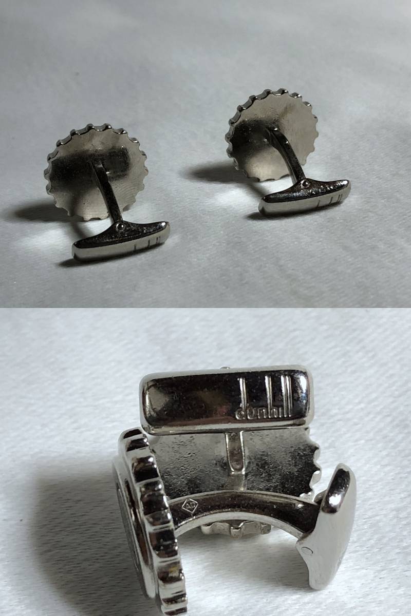 正規良 激レア dunhillダンヒル dロゴ マシンギアモチーフ立体カフス シルバー オーバルカフリンクス ラウンドホイールボタン 歯車デザイン