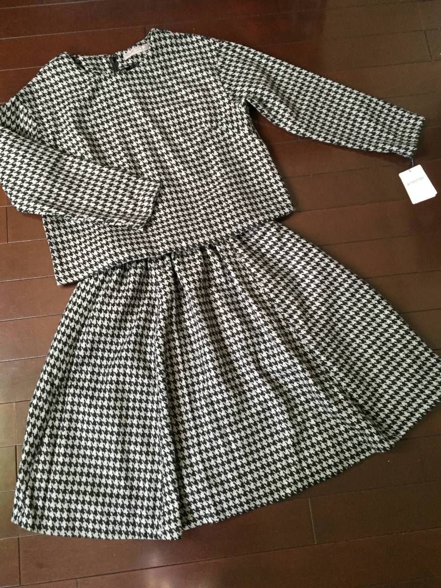 新品★ユナイテッドアローズ セットアップ 上・下のセットアップです。 サイズ : F、スカート丈54cm スカートのウエストはゴムなので伸縮します。裏地付です。 材質 : ポリエステル50%、アクリル41%、レーヨン3%、ナイロン3% 毛2%、綿1% 色:黒×グレーの千鳥格子 | |