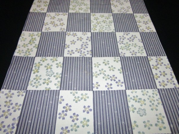 | 【京わぎれ】正絹 長襦袢はぎれ 市松取に桜 紫グレー系 替え袖用2.2m① | ||||