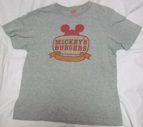 MickeyのTシャツ/グレー,SIZE:S,UT&Disney/。