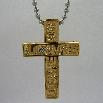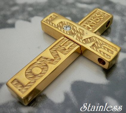 在庫処分★サージカル ステンレス製ジルコニア付LOVEクロス十字架 ペンダント/分離するのでペア使いもok/ステンアクセALL50%OFF