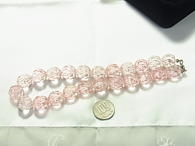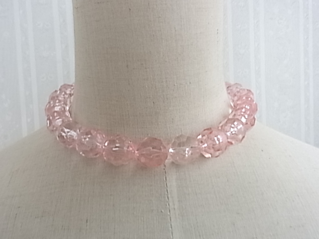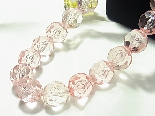 薄いピンク色 桜色 カッティングが綺麗なガラス調ビーズストーン 大きめデザイン ネックレス△△