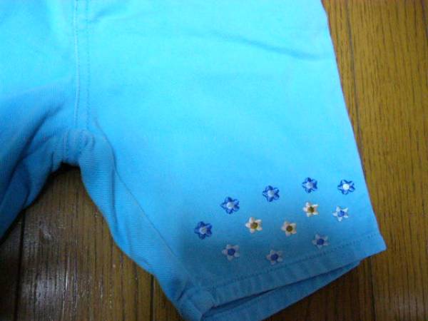 ☆ とっても、可愛い ( 半ズボン ) です。子供サイズの100cmです。 色合いが、とっても綺麗だと思います。元気が出る色だと思います。子供らしいデザインです ☆ (色) 少し、光沢のあるスカイブルー / 綺麗な水色 (サイズ) 100cm (素材) 綿 100% (製造) 中国製 (デザイン) ~ 秋冬以外だったら、きっと穿けると思います。カジュアルな感じなので オーバーニーの靴下など、いろいろお洒落が出来ると思います。女の子が好きそうな デザインなんですよね。伸縮性はありません。実寸にご注意をして下さいませー。 ウエストは、前側の少しの部分を除いてゴム地です。前側の裾に描かれている、刺繍の花模様が とっても可愛いと思います。この色合いに似合っています。元気な女の子に是非、穿いて欲しいです。 (状態) ~ 中古ですがホームクリーニング済みです。全体的には、中古としたら綺麗だと思います。普段着には最適です。 ただ、綿素材なので、少しの洗濯感はあると思います。前側の真ん中の辺りには、薄い黄色の 汚れが、1cmと薄い薄い黒の汚れが、棒状で2cmあります。私は、ほとんど気になりません。 普段着としては、充分たど思うのです。全体的には、中古としたら綺麗だと思います。洗って、たたみ アイロンをかけてからPPの袋に入れて発送を致します。実寸をよーくご覧を下さいませ。 (総丈) サイドで、35、4cm (ウエストの横幅) 19、8cm (足が出る部分の横幅) 14、5cm (ヒップ) 35、5cm (股下の長さ) 13、3cm |