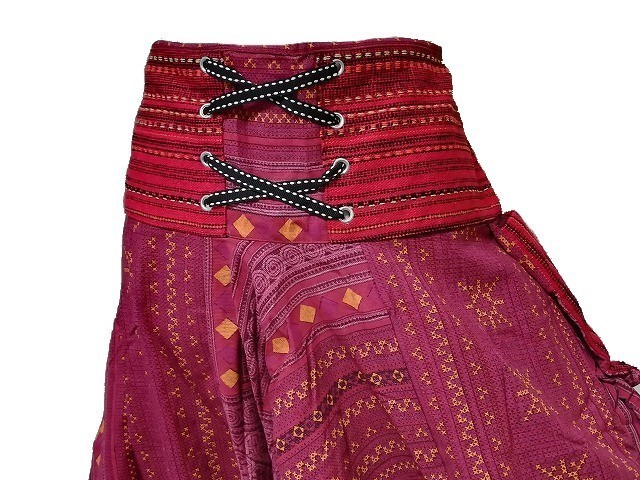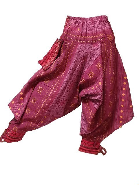 【新品】アジアン ガウチョパンツ 2パターン★レッド/赤 A【FREE】サルエルパンツ アラジンパンツ スカンツ ジョガーパンツ ダンス 男 女