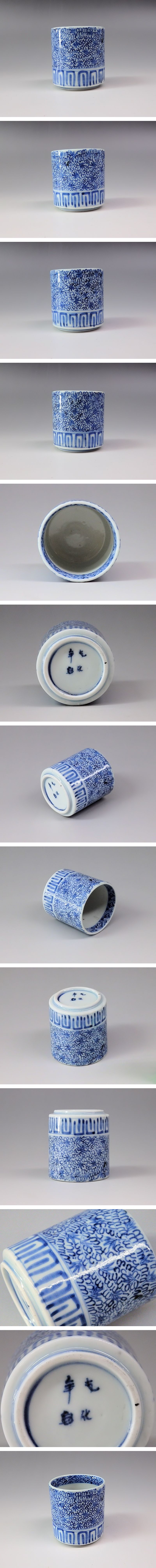 ★華心★ ADo-A604 古伊万里 染付 微塵唐草の図 のぞき