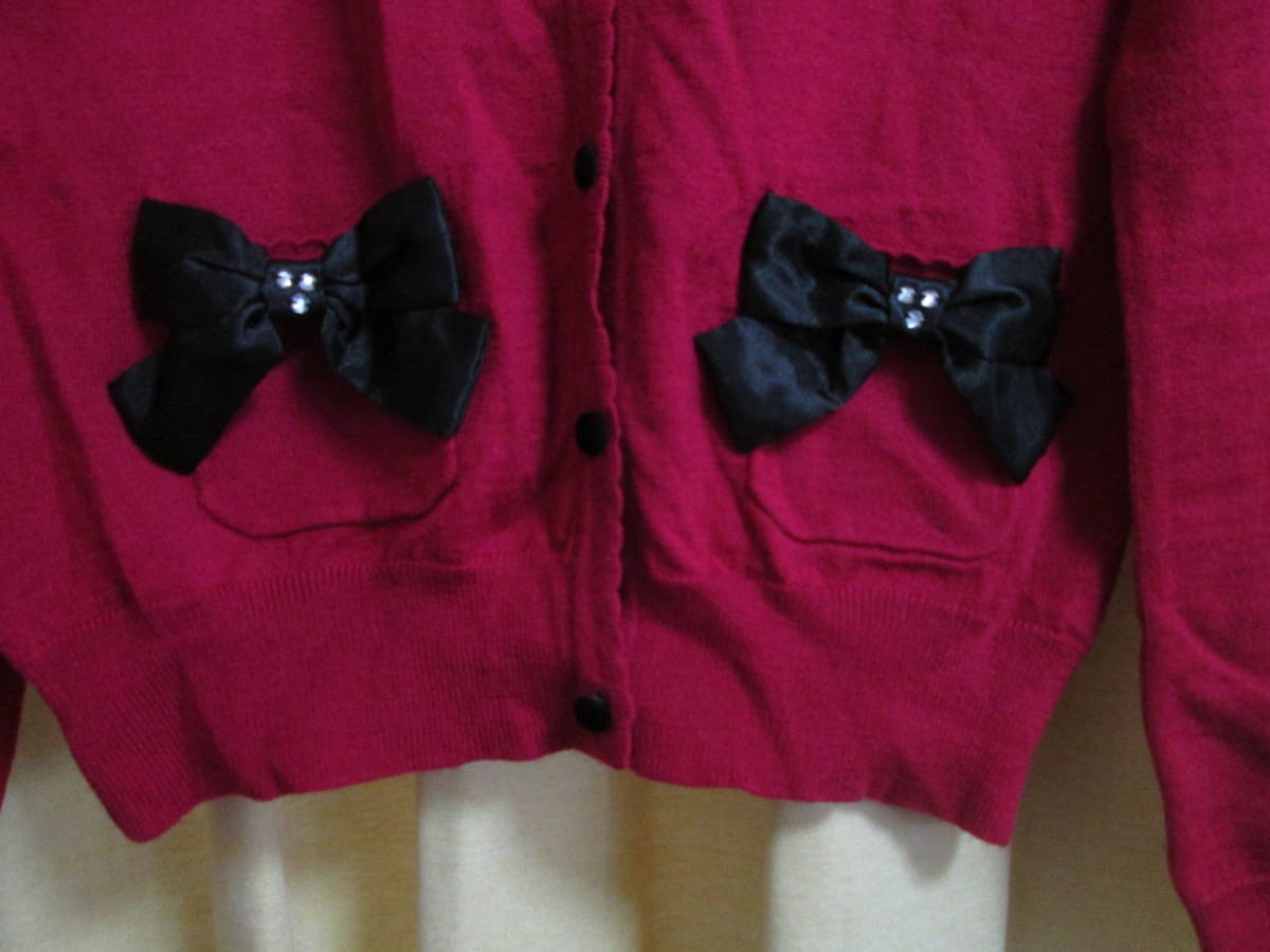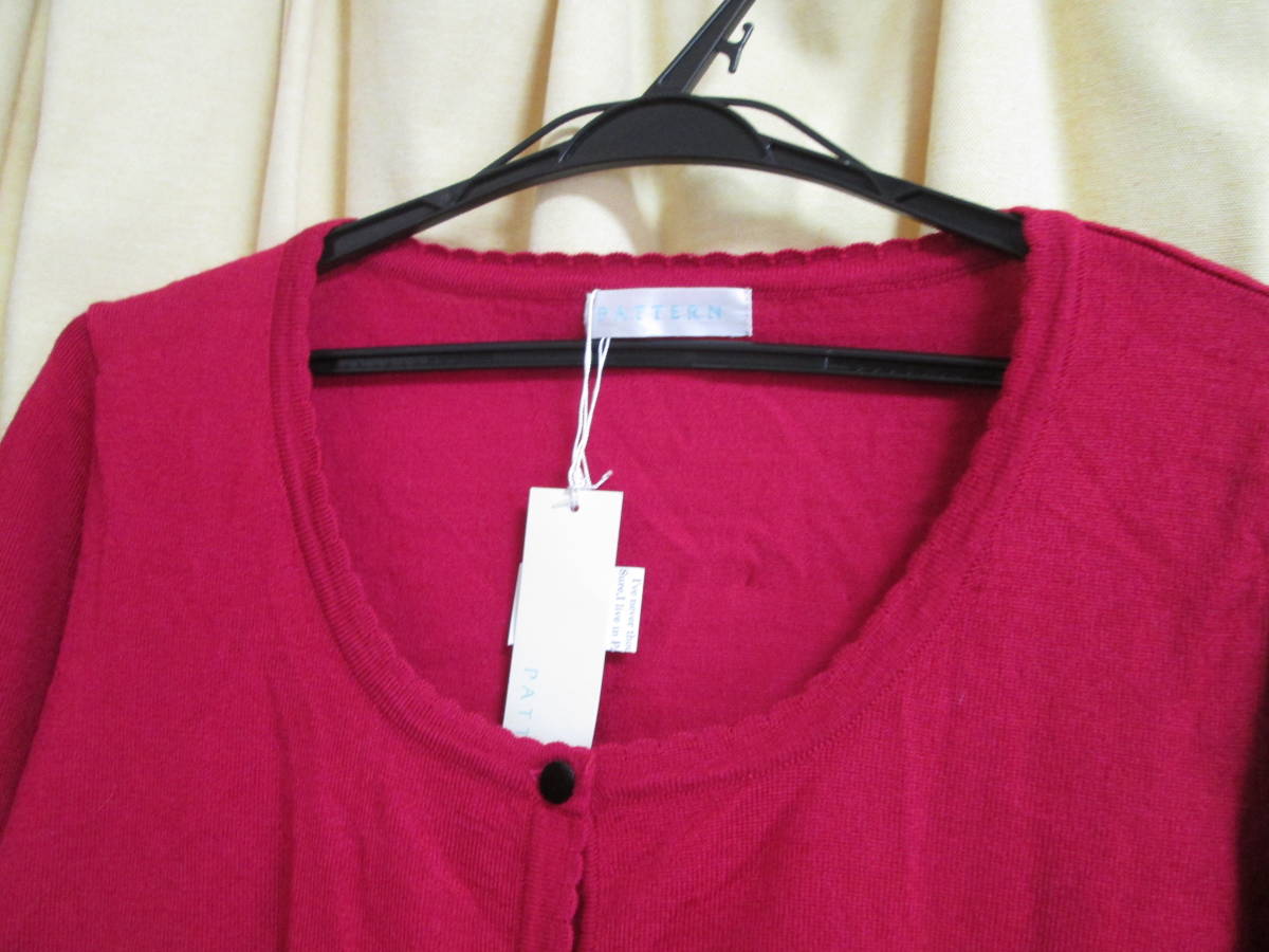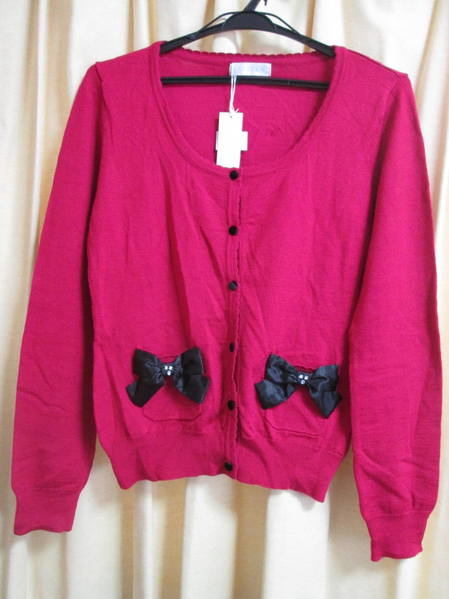 | 新品未使用タグ付★PATTERNのビビットピンク×黒リボンのカーディ Mサイズ | |||