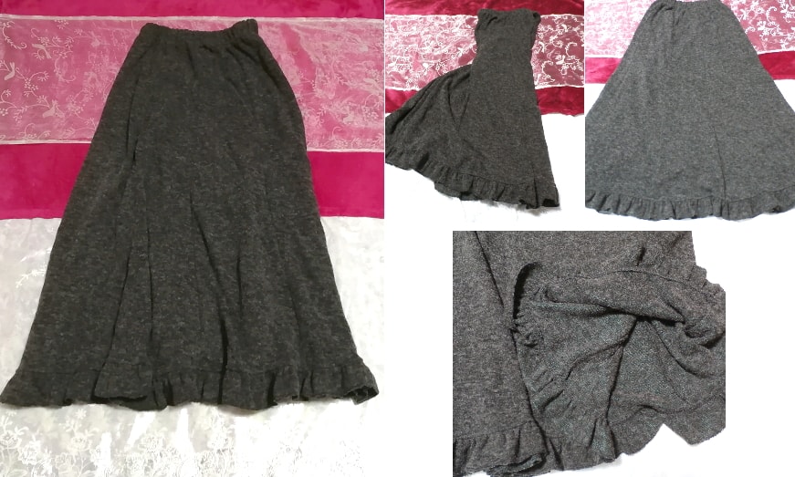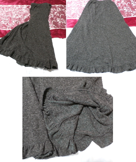 クチュリオール 起毛グレーロングフレアスカート裾フリル Gray long flare skirt hem frill