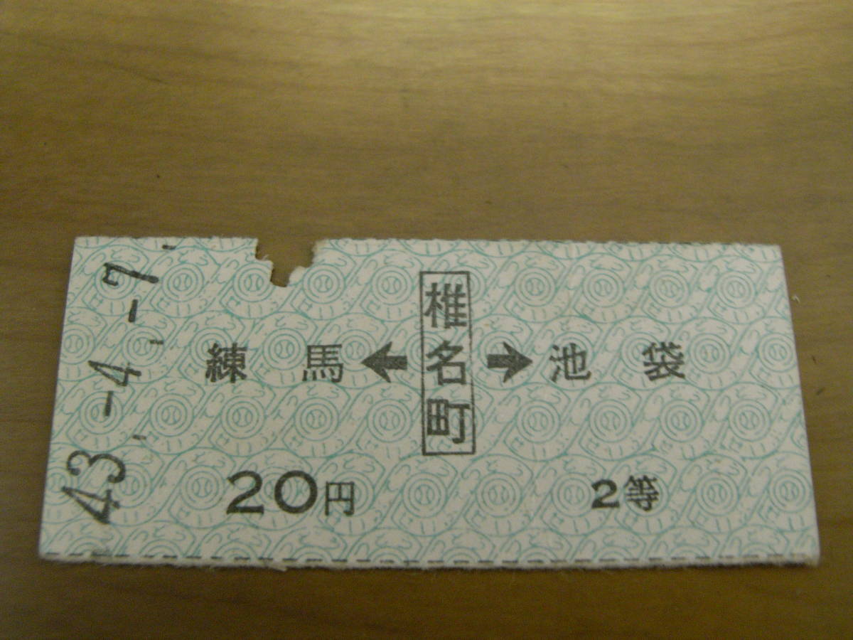 西武鉄道 練馬←椎名町→池袋 20円2等 昭和43年4月7日 /半硬券