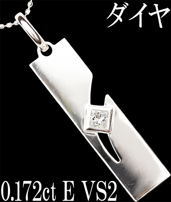 上質☆ダイヤ 0.172ct E VS2 プリンセス K18WG ペンダント ネックレス プレート♪鑑定付・送料込 | ||