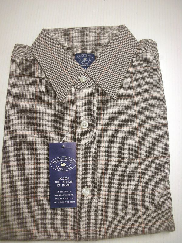 綿 100% の純綿個性的長袖カジュアルシャツです。ダークブラウン 赤茶色等のオーバープレードチェックパターン。こだわりのバックループ付き。着心地のよい素材。
