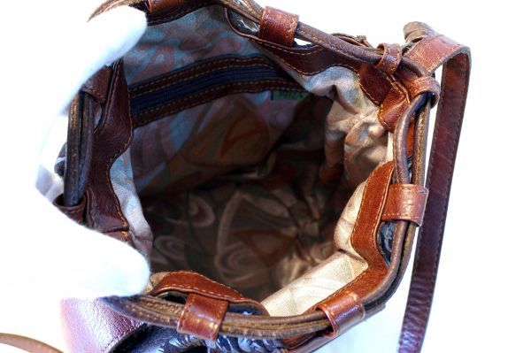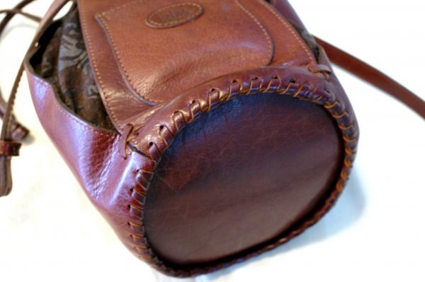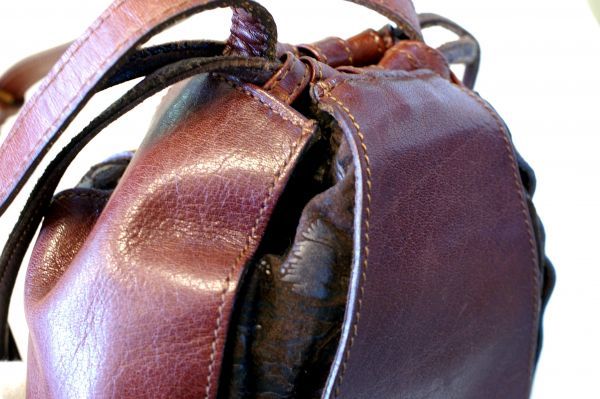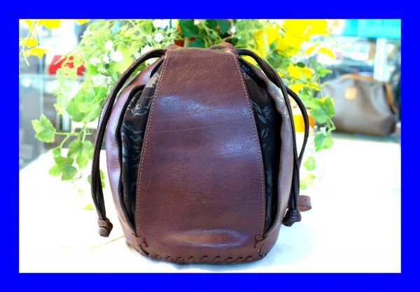 ■商品名○美品 イビザ IBIZA レザー 巾着型 ショルダーバッグ ブラウン B0224 | |||||||||||||