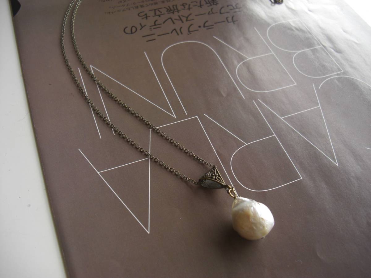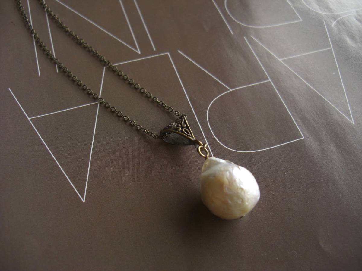 乙女の時間・・シリーズです♪バロックパールの魅力・・大きな一粒パールのネックレスです♪存在感のある20×15 ミリ位の大きなバロックの一粒パールにはシックな座金と華奢なチェーンを合わせました♪長さは70センチ+アジャス ター10センチで最長80センチ位でトップは4センチ位です♪お揃いのネックレスやブレスレットも出品しています♪シンプルで長く着けていただけるデザインに仕立てました♪ハンドメイドをご理解頂いてノークレーム、ノーリターンでお願い します