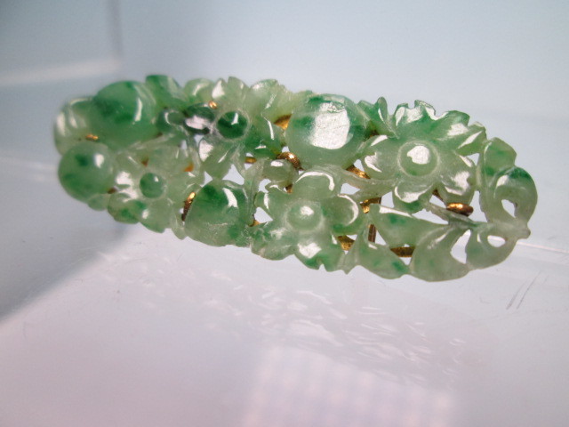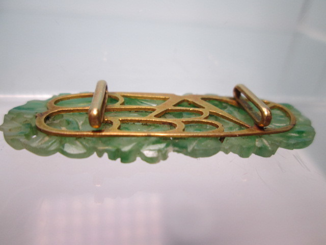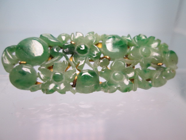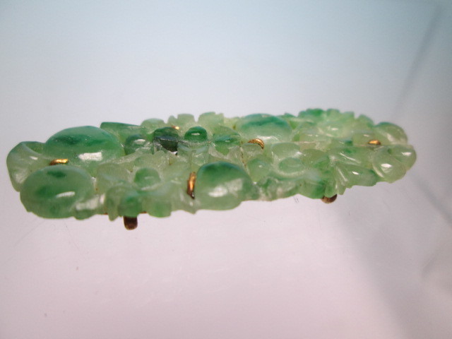 【江月】アンティーク・本翡翠 花と実透かし彫刻の帯留め 4,28g