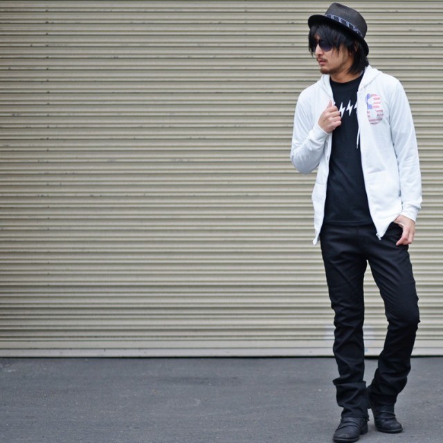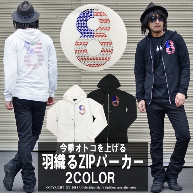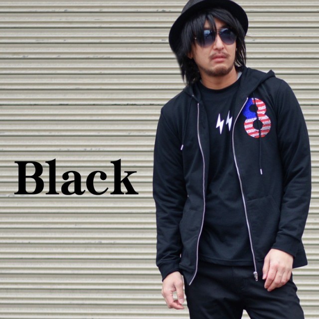 ジップアップ/ドローコード/袖・裾リブ/スカル柄