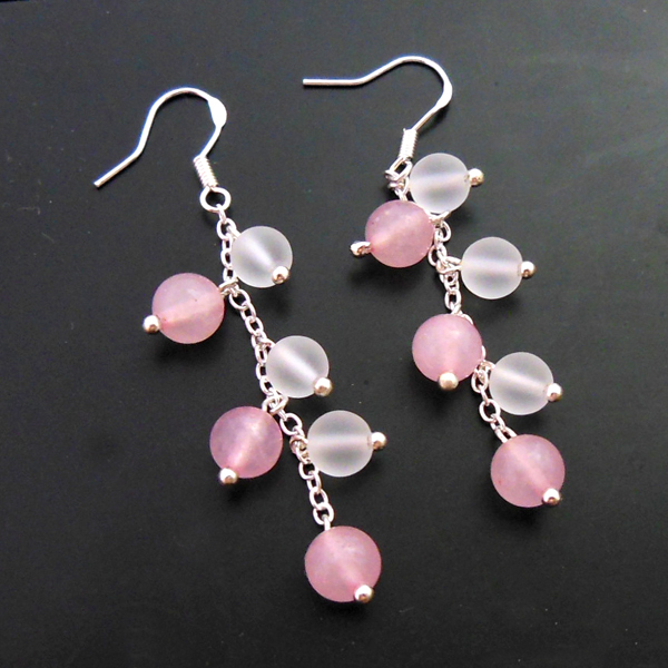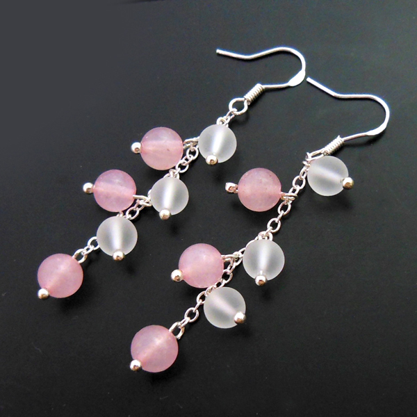 マット仕上げ水晶&ローズクォーツ シルバー製フリンジピアスAT *大人可愛い(*^_^*)* |
