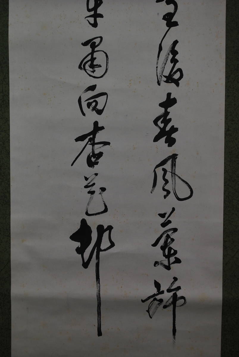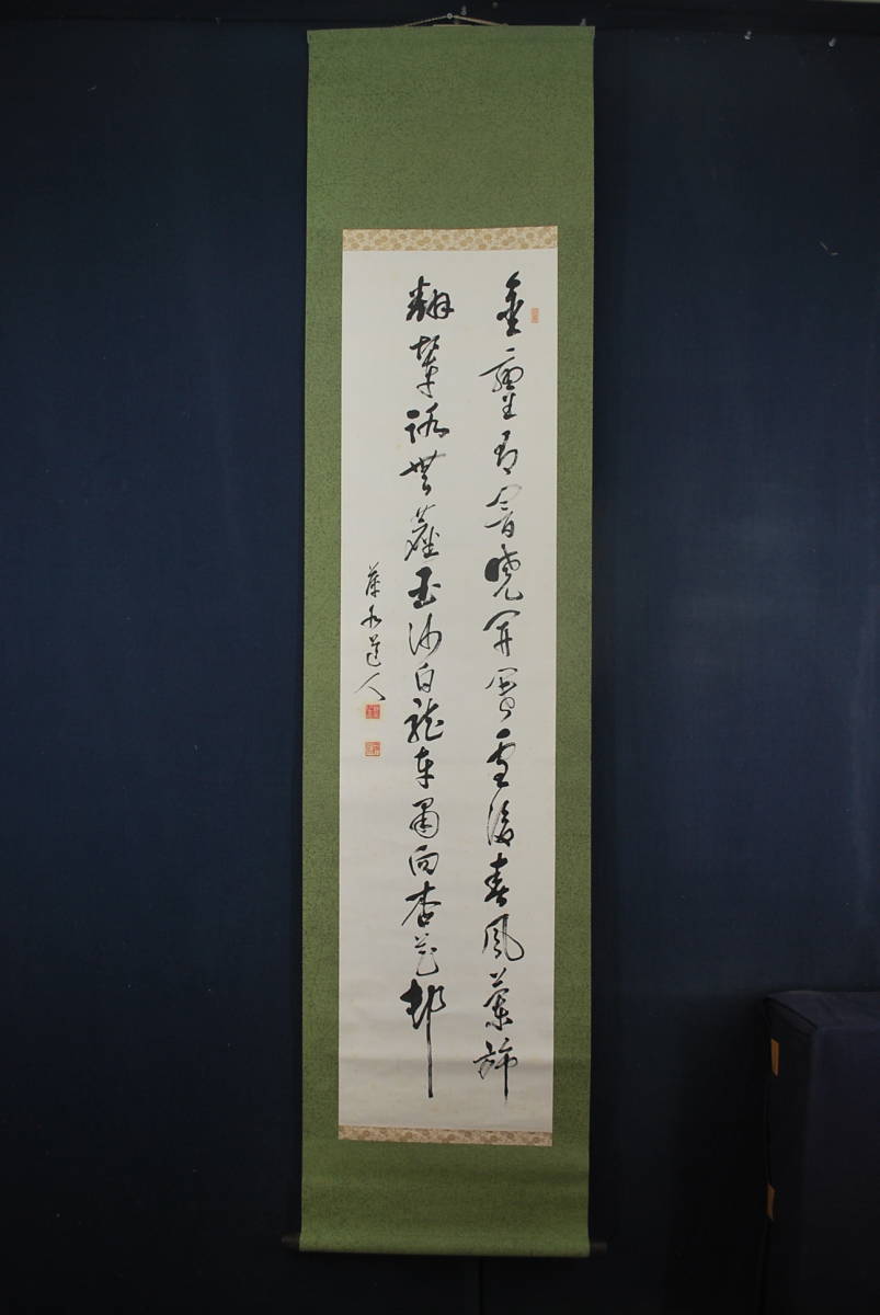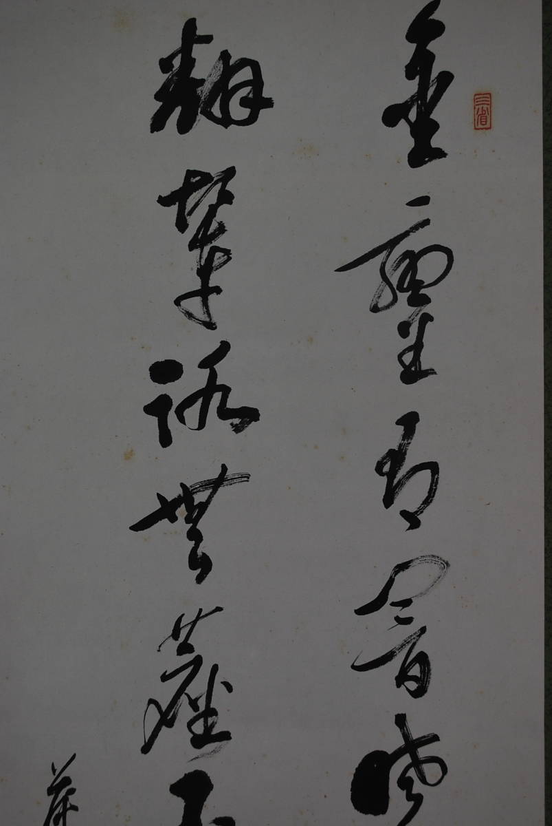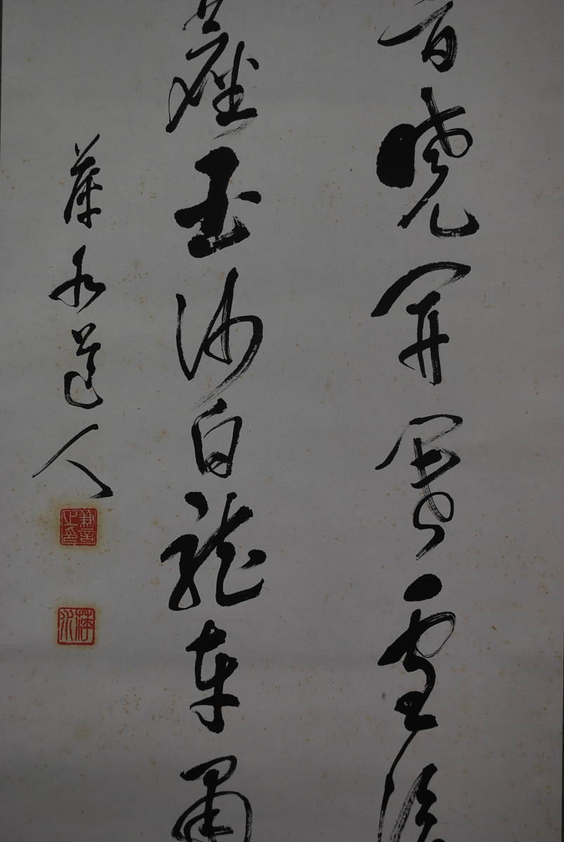 【作品状態】 本紙は紙本肉筆です。  本紙は薄汚れ、全体にシミあります。表装はもみ紙表装で概ね良好です。