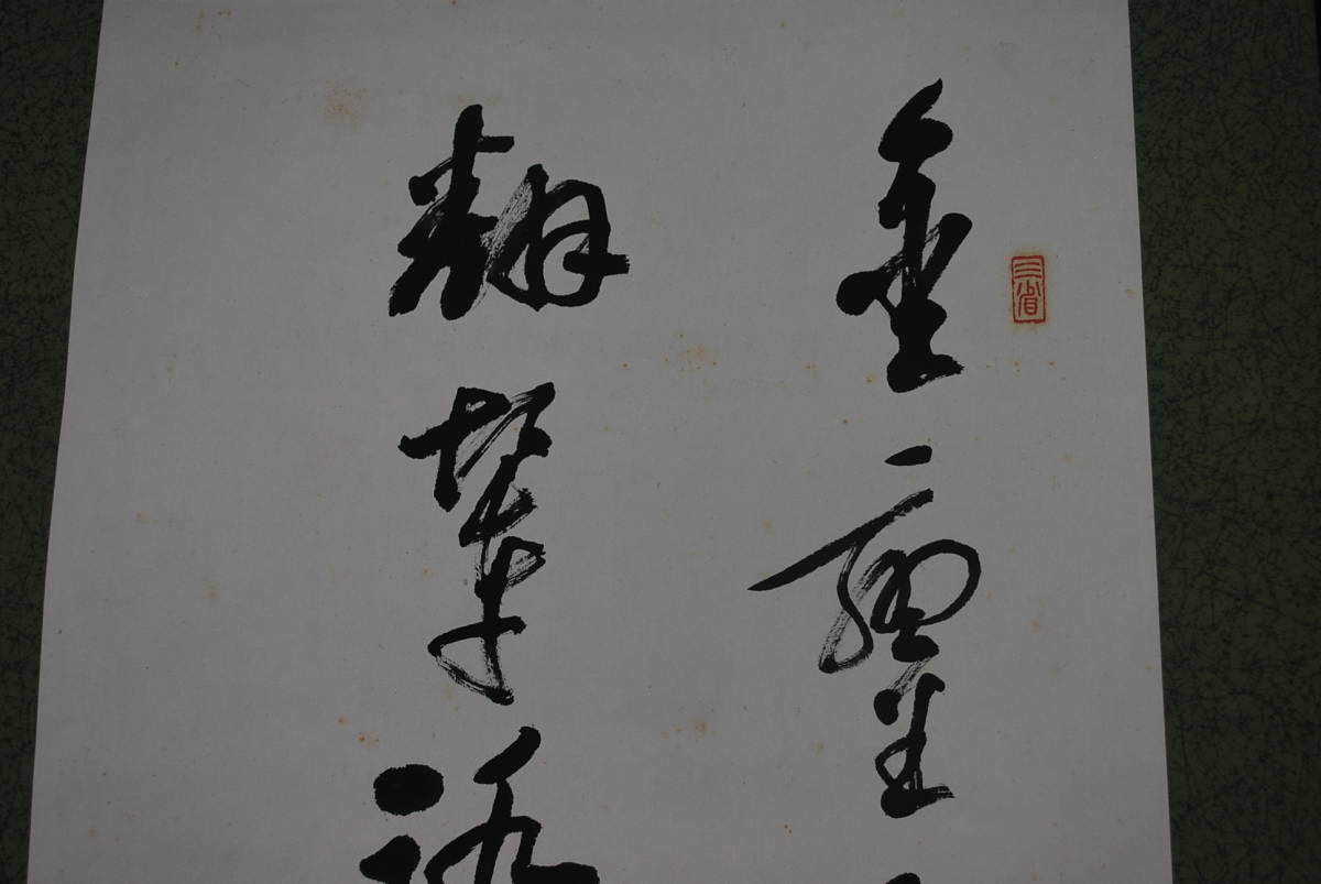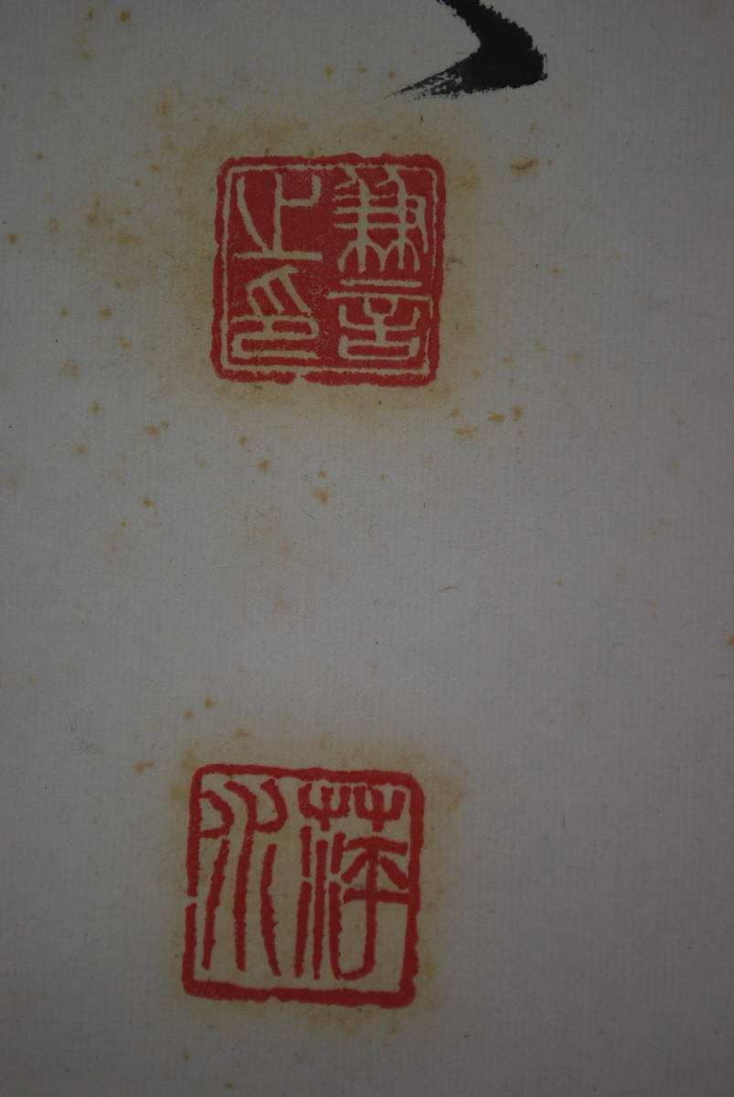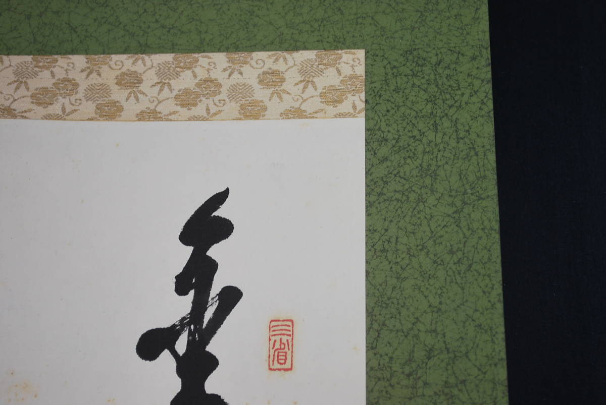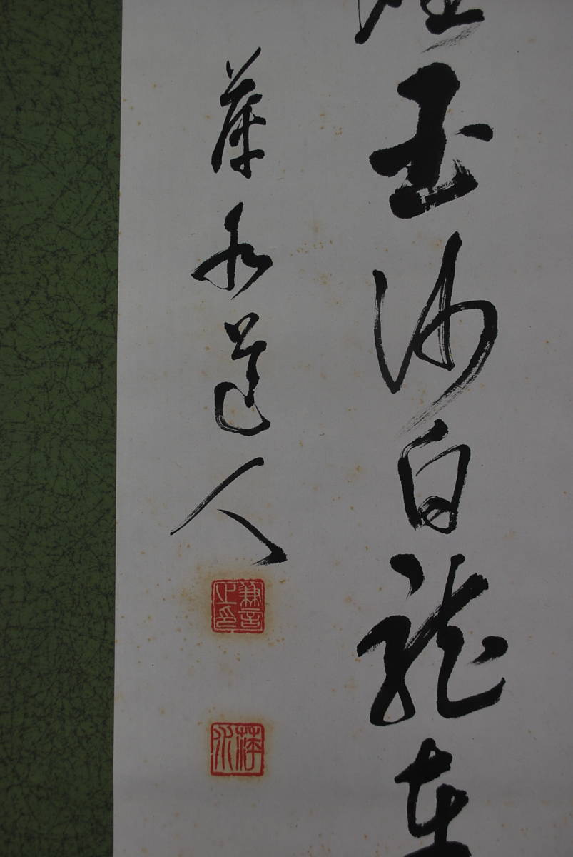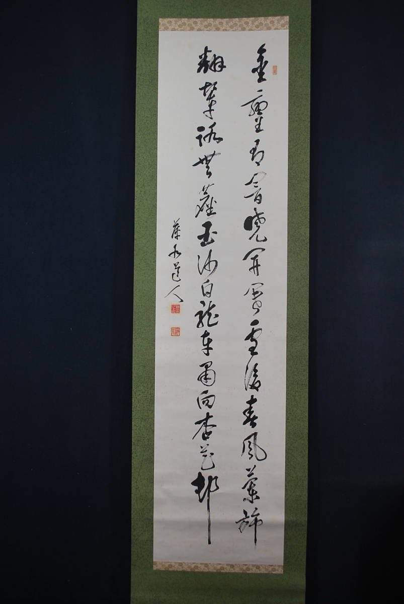 【作品状態】 本紙は紙本肉筆です。  本紙は薄汚れ、全体にシミあります。表装はもみ紙表装で概ね良好です。
