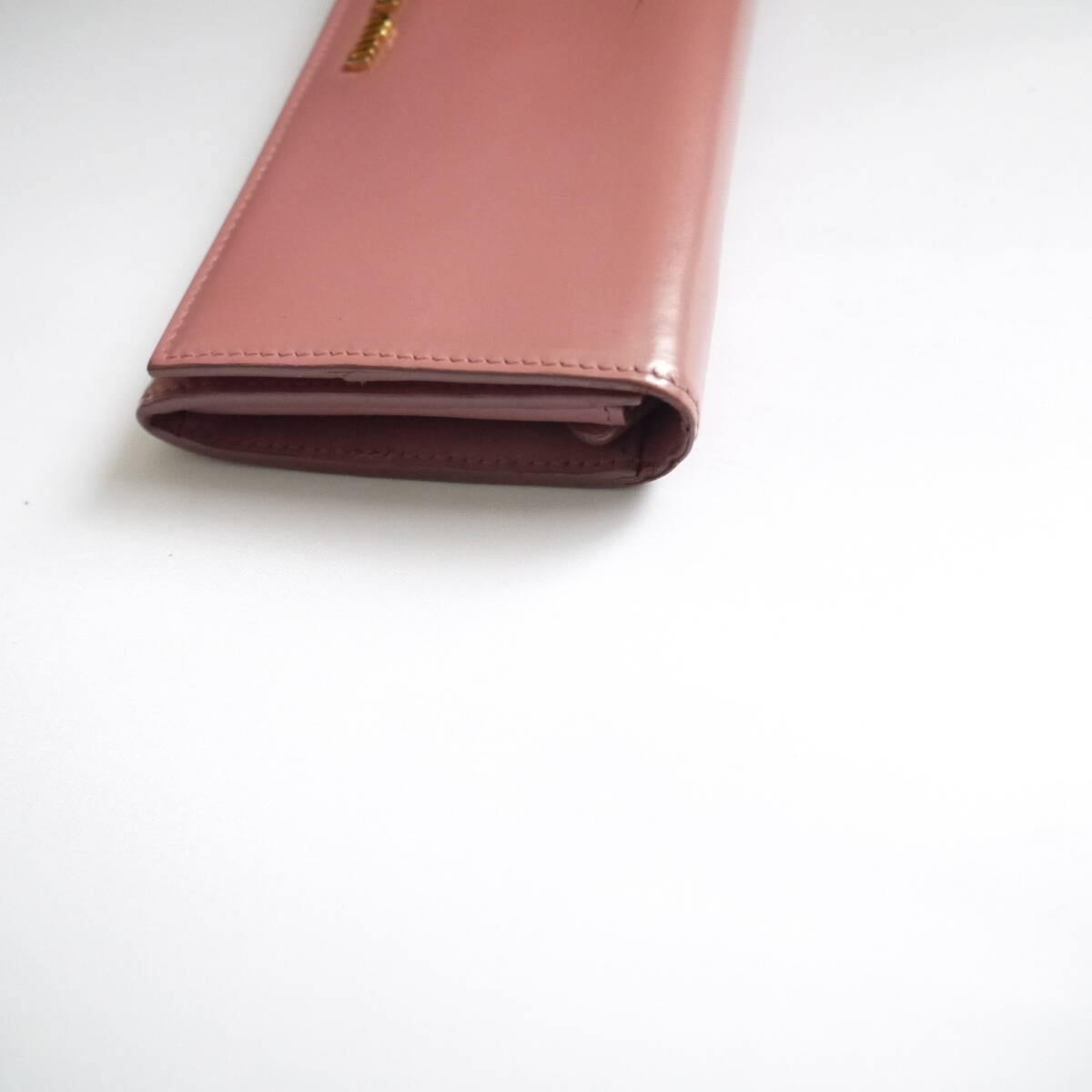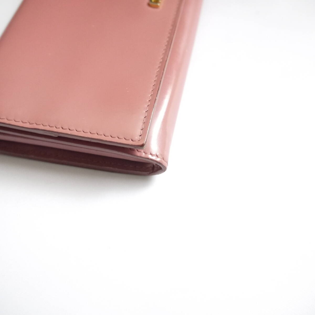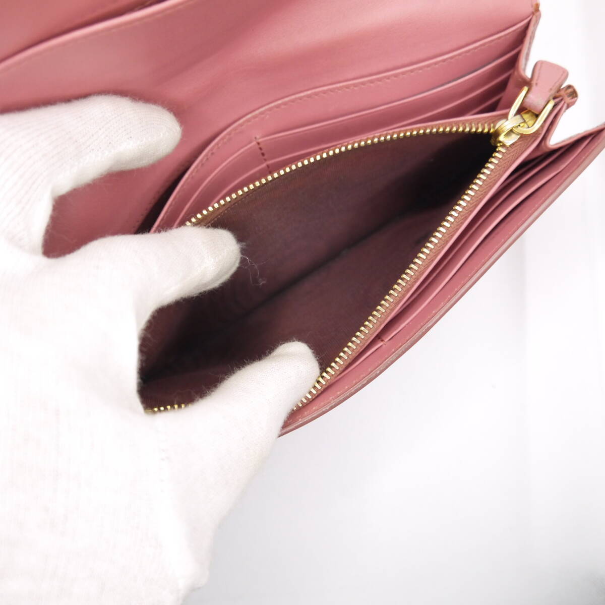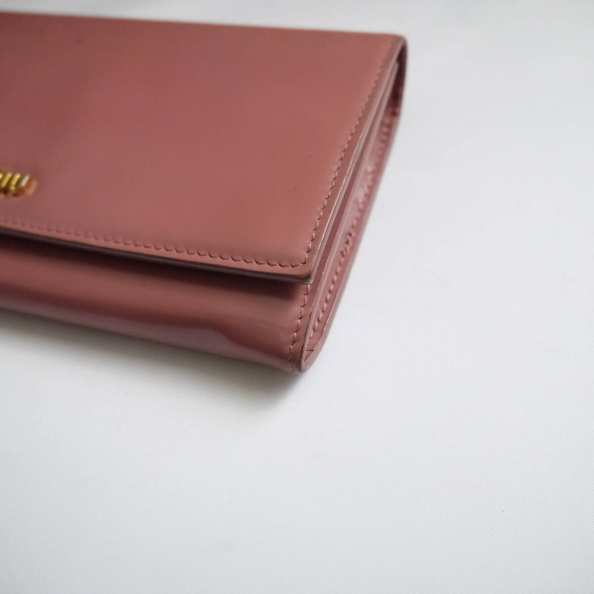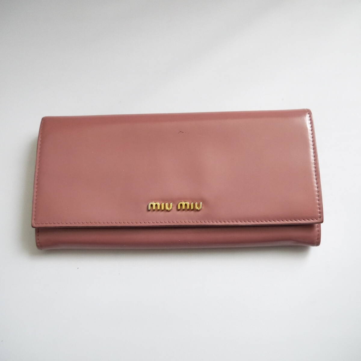 $ 美品 $ レア♪ 秋 ◆ miumiu ◆ ミュウミュウ ◆ 本革 レザー素材 ・ 2つ折り 長財布 ◆ ストロベリーピンク系 ◆ 送料無料!!