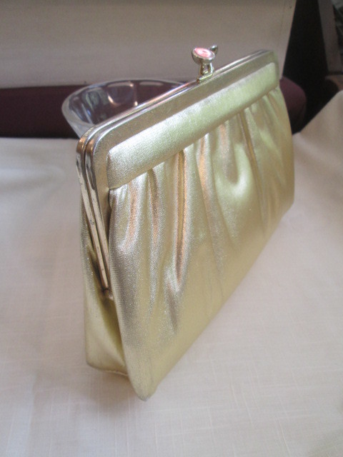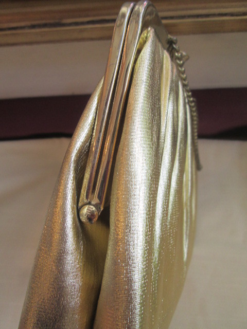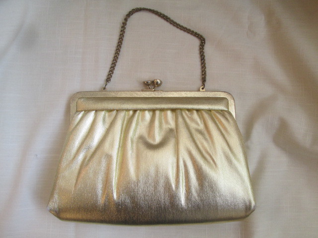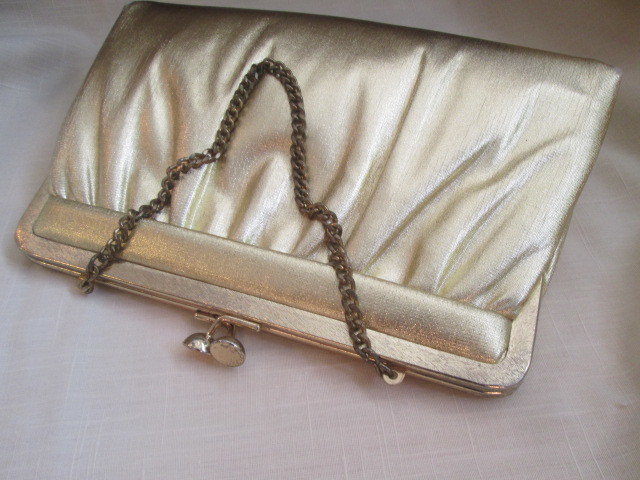 希少豪華!USAヴィンテージ ゴールドカラー 2WAYパーティーバッグ女性 アメリカアンティーク/70's50's北欧古着コスチュームジュエリー