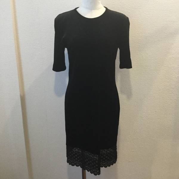 フォクシー 裾レース切替デザインワンピースドレス38/ベロアベルベット系