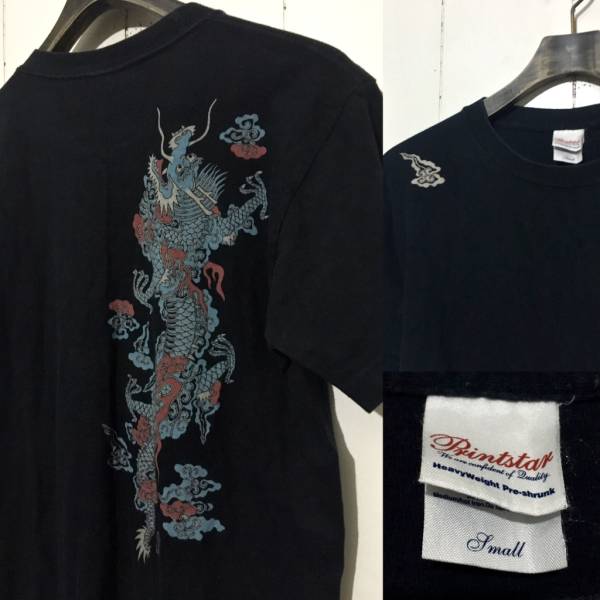 ☆Printstar S 半袖Tシャツ 龍 ドラゴン 和柄 黒 ブラック プリントスター 昇り竜