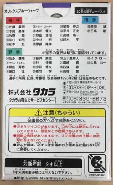 タカラ プロ野球カードゲーム 1998 オリックス(パッケージトップ イチロー)